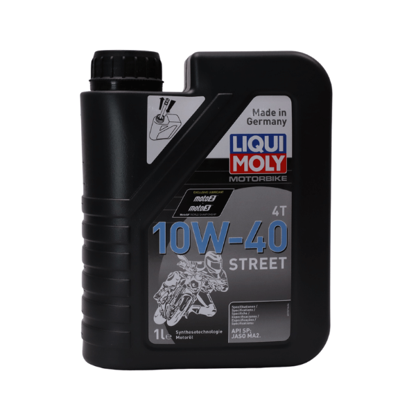 Liqui Moly Street 4T 10W-40 aceite semisintético alemán de alta calidad. Excelente para uso diario en motocicletas de calle, ofrece protección superior y rendimiento confiable.