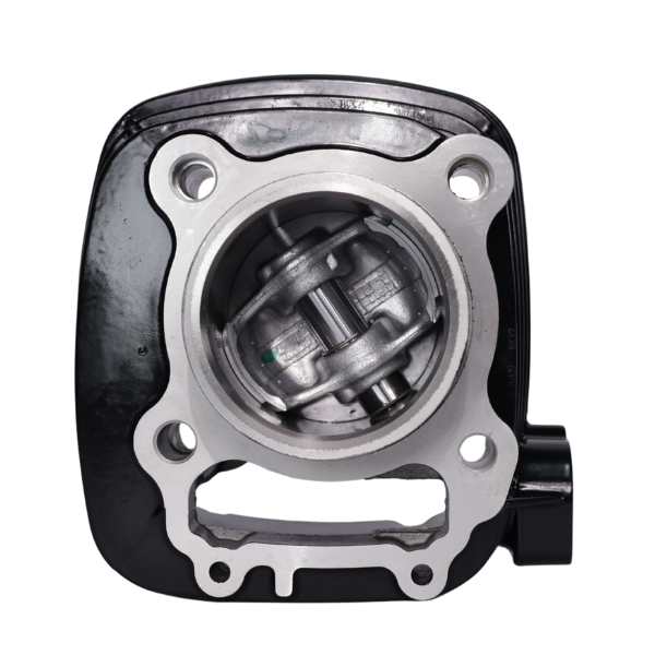 Cilindro original Bajaj 250cc con pistón ensamblado referencia 36JR0072. Fabricado en hierro fundido con aletas de refrigeración de alta eficiencia y acabado negro de alta durabilidad.