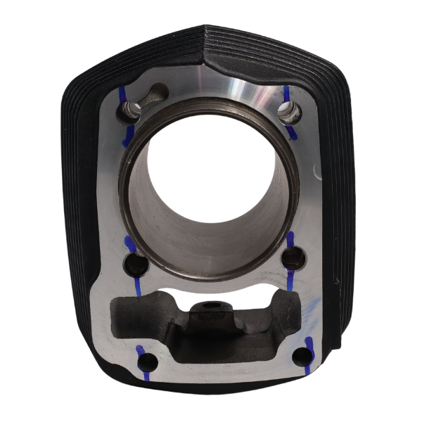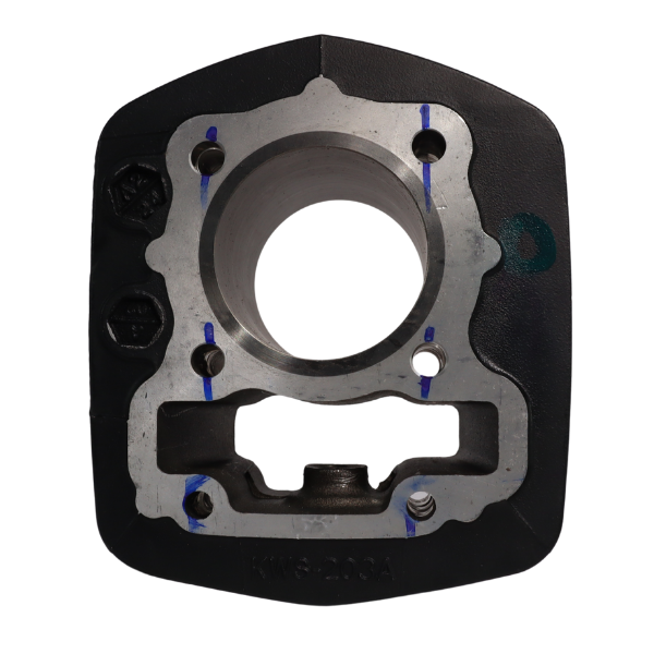 Kit de cilindro original Honda con pistón completo, referencia 01210-K14-910. Cilindro en aluminio con acabado negro y aletas rectangulares de refrigeración, pistón de aluminio forjado (ref. K23), anillos, empaques de culata y base, pin de pistón, seguros y rodamiento de biela.