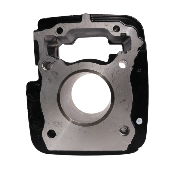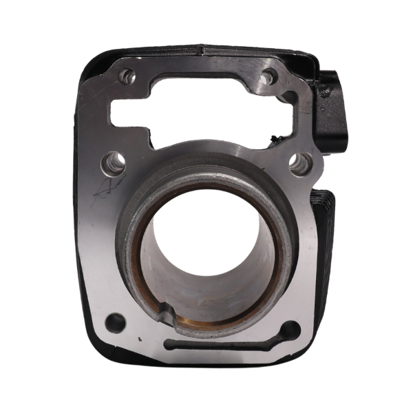 Kit de cilindro original Honda referencia 01210-KTE-A02 con pistón completo. Cilindro en aluminio fundido con acabado negro, aletas de refrigeración horizontales y boquilla lateral de admisión. Pistón de aluminio forjado (ref. KTE) con anillos, empaques de culata y base, pin de pistón, seguros y rodamientos de biela. Fabricado en India.