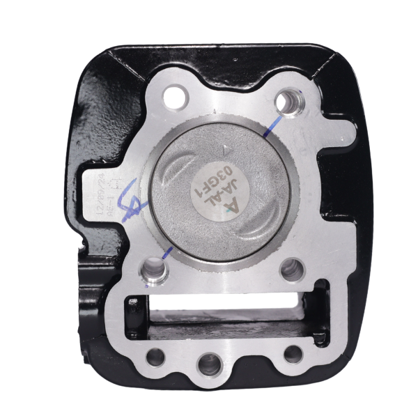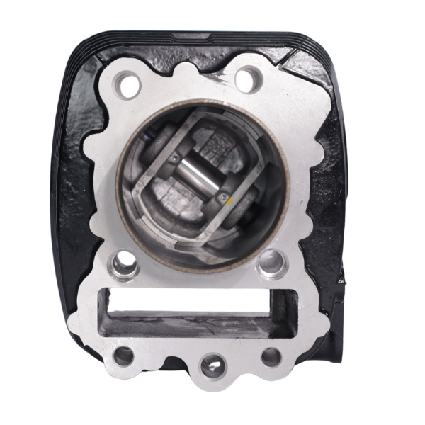 Kit de cilindro bloque con pistón original Bajaj, referencia 36JD0021. Cilindro en hierro fundido con aletas pronunciadas y puerto de admisión circular.