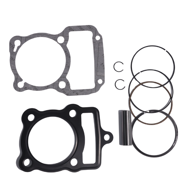 Kit completo de cilindro y pistón original AKT Motos para modelos AK 150 SR N. Cilindro de paredes lisas para motores de enfriamiento por aceite, pistón de aluminio forjado con ranuras para válvulas y 3 anillos de alta resistencia. Incluye todos los accesorios para una reparación completa.